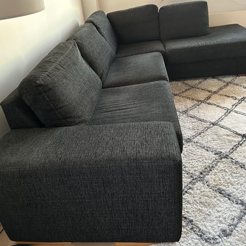 Hörnsoffa med divan från Mio med sitt/fotpall. I mycket fint skick. Hämtas i Rödeby.