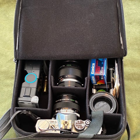 Pentax kameror med objektiv och väska och tillbehör, allt i befintligt skick.