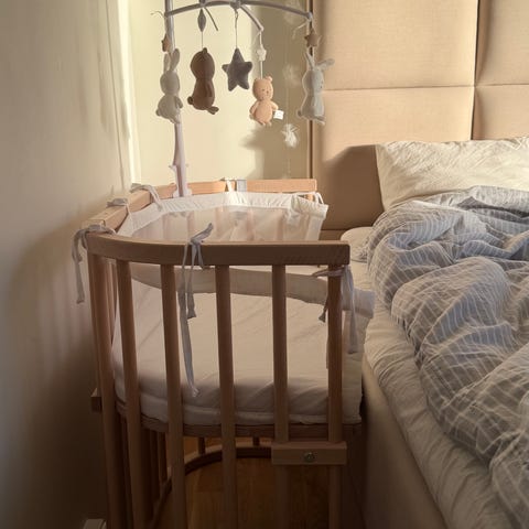 Man fäster den alltså i sin säng undertill så bebis får en egen sovplats. Har varit guldvärd under nyföddtiden!