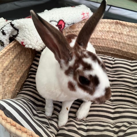 Hon Àr jÀttetrevlig, frisk och van vid hantering. Hon bor för tillfÀllet med en kastrerad hane som har en egen annons. De gÄr bra ihop men mÄste inte flytta ihop.