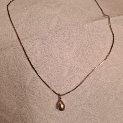 Silverhalsband 925 med en gnistrande bergkristall. Hänget är stämplat. Se bilder. Mått ca 2,4*1,2 cm