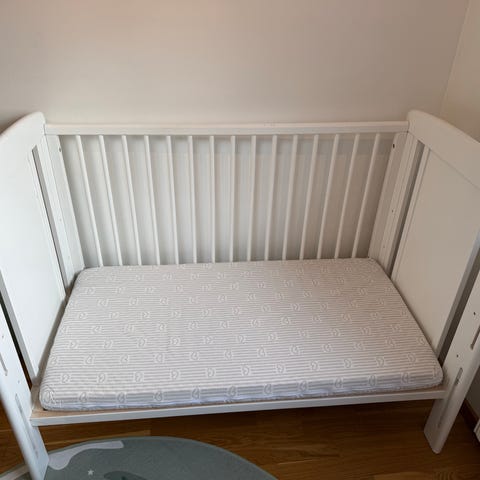 Säljer den med madrassen inkl två vita lakan samt en kiss underlägg som aldrig användes.
