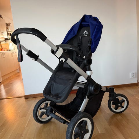Bugaboo barnvagn, endast med sittdelen, använd av tre barn. Vi köpte komplett nytt tyg i svart färg ca 3 år sedan så det är mycket fint och ej UV blekt.