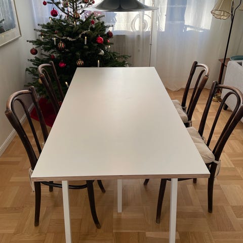 Bordet från HAY är ett CPH210 Deux 2.0 bord, 75x140 cm. 4 st stolar från IKEA - Lisabo ingår.