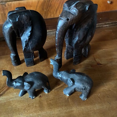 Handgjord bokstöd med en elefantfigur i trä. Bokstödet är handgjord i ebenholts? storlek 19x16 cm. Den har en torrspricka. Bokstödet har vackra inläggningar med mönster. Bokstödet har ett hemligt lönnfack..