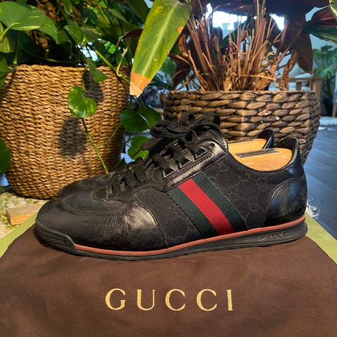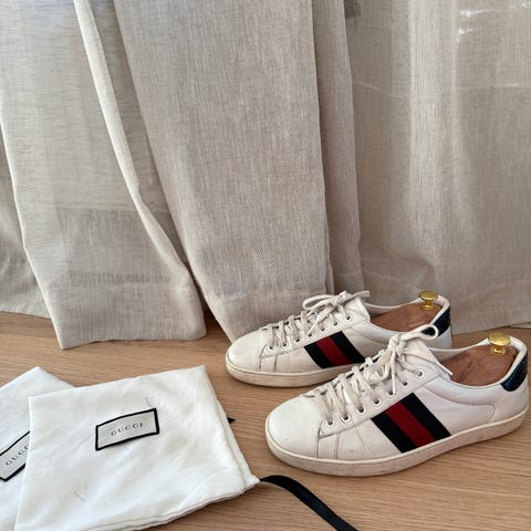 Gucci trainers i marinblått. Välanvända men i fint skick. Storlek 42. Sällsynta och nypris på över 8400kr. Säljes billigt