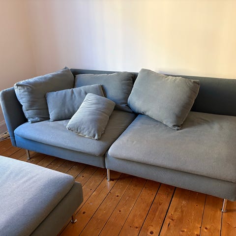 Säljer en schäslong Söderhamn. Kuddarna ingår inte utom den långa som tillhör. Helt ok skick (se bilder) lite naggad längst ned. Annars ren och fräsch. Jag har den som en liten soffa. Finns på Södermalm 1 tr upp, bärhjälp behövs.