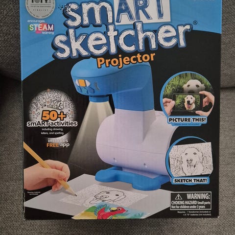 Rolig och enkel projektor som hjälper barn att rita. Funkar perfekt via app och Bluetooth, där man kan välja egna bilder från mobil eller surfplatta.