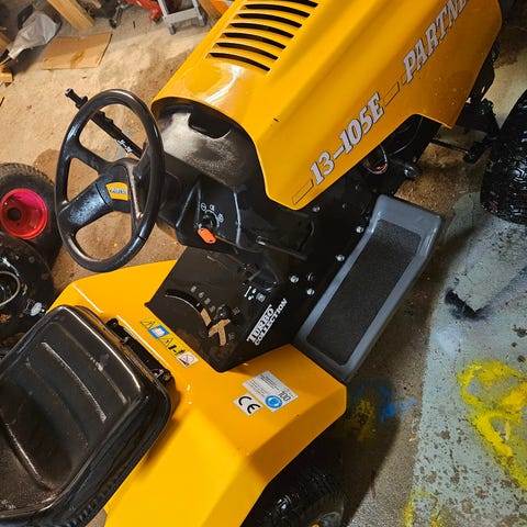 Den är använd en säsong i en svår trädgård på 2500 kvm med många branta partier, fungerat mycket bra. Alla orginaldelar medföljer, kartong saknas.