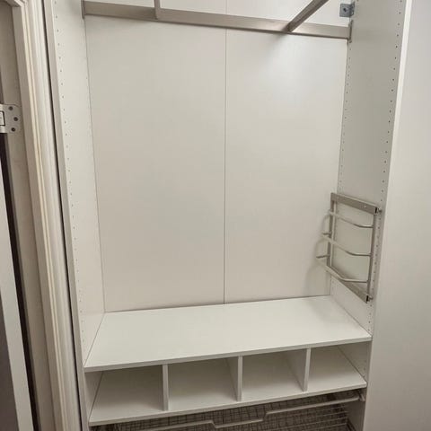 Jättefin och komplett PAX-garderob från IKEA med dörrar i frostat glas.