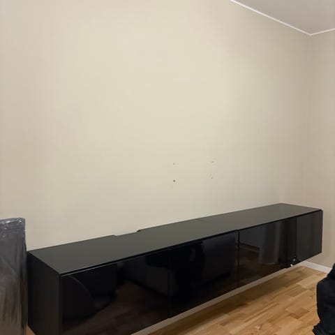 Bestå TV-bänk 120cm med Kallviken luckor. Allting i nyskick, utan skador eller missfärgningar. Kommer med nannarp-ben (4st till ett nyvärde på 400kr) och glasskiva, nyvärde 425kr). Delar för att hänga upp på vägg medföljer dessutom.