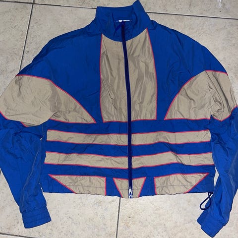Adidas jacka i storlek M, tillverkad i polyester. Jackan är grön och avsedd för utomhusbruk. Fickor med dragkedja, 2 innerfickor. Aldrig använd.