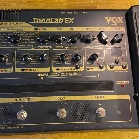 Cool liten miniförstärkare för elgitarr med inbyggd dist, delay, equalizer och tonekontroll. Den har Bluetooth och kan spela upp musik från t ex Spotify, auxingång och hörlursjack.