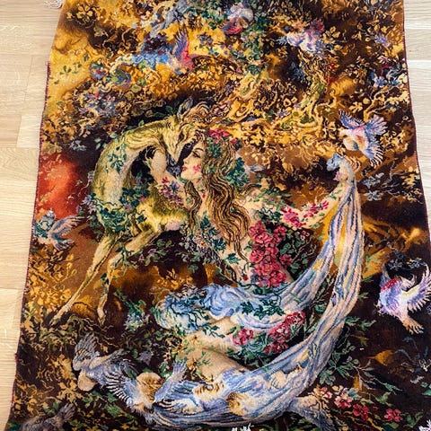 Säljer två handgjorda persiska matttavlor, vävda med stor detaljrikedom och klassiska motiv. Tavlorna säljs inklusive de vackra ramarna