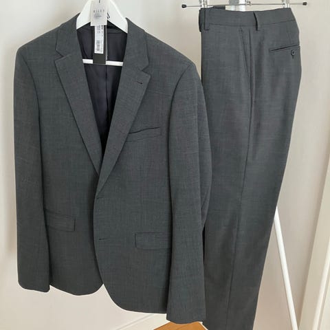 Matinique kostym i grå färg, storlek 48 för herrar. Tillverkad i bomullsmaterial. Setet inkluderar kavaj och byxor.
