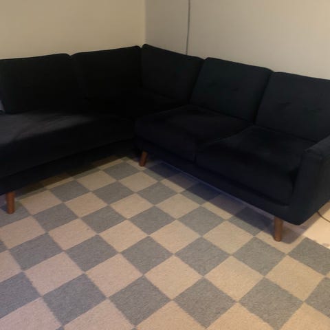 Soffa bortskänkes på grund av flytt. Måtten står på bilden. Ett av benen har lossnat.