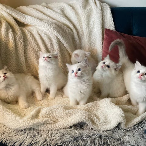 Två superkeliga kattungar är nu redo att hitta sina för-alltid hem. De är snart 12 veckor gamla. Mamman är Ragdoll, så de är lite långhåriga och har hennes keliga och sociala temperament, och pappan är bondkatt. Vi har delvis fött upp dem på flaska så därför är de extra keliga, tama och kärleksfulla. De är livliga och lekfulla och mycket vana vid barn.
