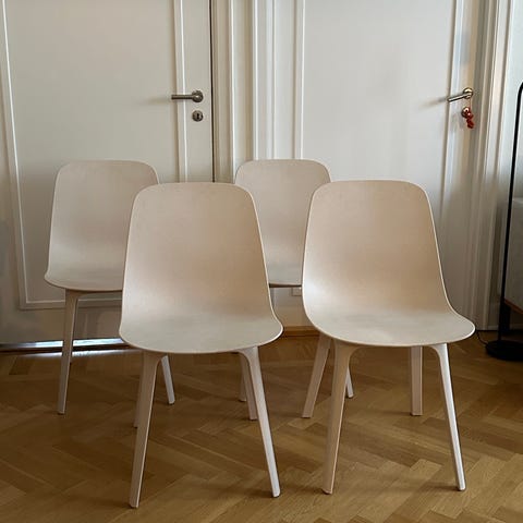 2 st köksstolar ODGER från IKEA. Okej skick. Ena fästet mellan sits och ben gick av vid montering i fast läge, se bild. Inget som påverkar funktionen.