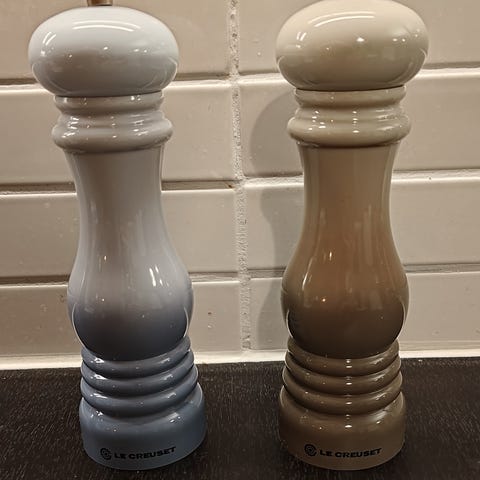 Fint set av Le Creuset pepparkvarn och saltkvarn 21cm i cerise röd färg