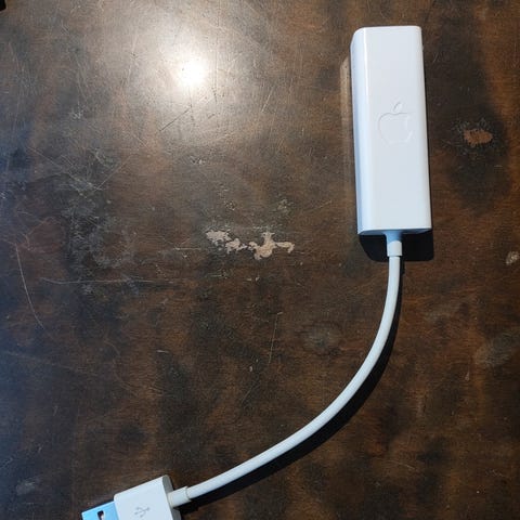 Satechi adapter med USB-C-anslutning och Ethernet-port. Används för att ansluta enheter med USB-C till nätverk via Ethernet-kabel. Kompakt och bärbar design.