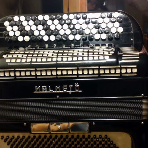 Då min far gått bort så säljer jag detta dragspel. Jag kan själv inte spela.