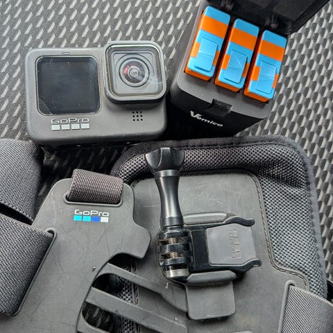 Säljer min gopro 12 med massor tillbehör, inklusive laddbox med ett extra orignial batteri,tripod(oöppnad),Suction Cup(som kan sätta på glas) och mm( se bild 1).