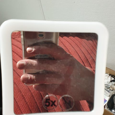 Sminkspegel med 5x förstoring och ledljus.