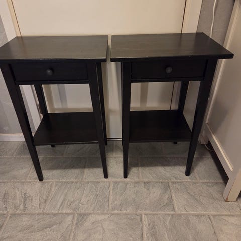 Säljer två stycken sängbord från IKEA, Hemnes. De har en del skavanker i ytskiktet men i övrigt fina. Säljer båda för 150kr tillsammans. Finns i Alsike.