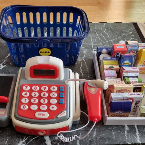 Kassaapparat och massa leksakspengar