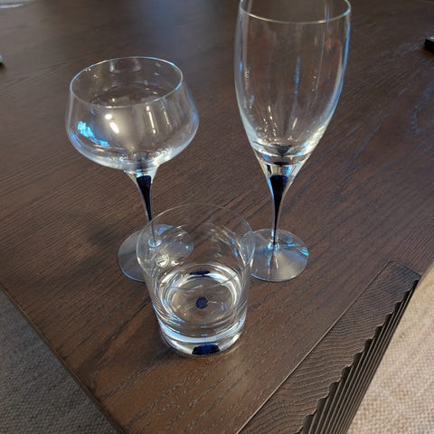 Orrefors glas i klart glas med stjälk. Används för servering av drycker. Glasen har en rund kupa och en tunn fot. Passar för olika typer av drycker vid måltider eller tillställningar.
