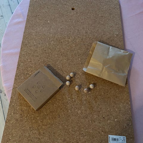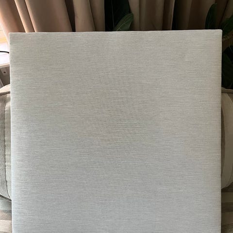 Trästomme med träfiberskiva. Klädd med tyg. Enkelt att klä om med annat tyg.