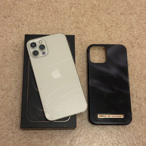 Apple iPhone 12 Pro mobiltelefon med 128 GB lagringskapacitet. Svart. 82 % batteri.