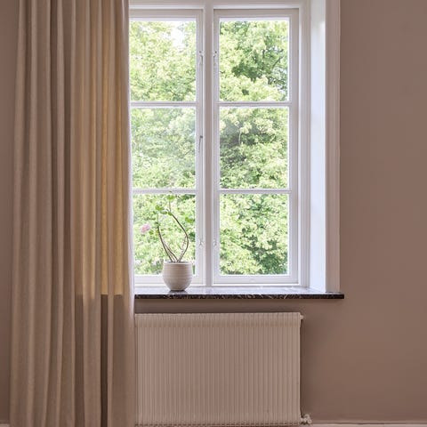 Svart gardinstång, 2 m men utdragbar/flexibel för att göras längre. Finns vid triangeln.