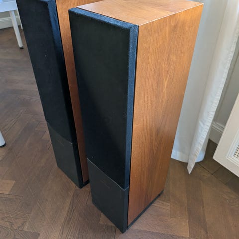 Två vägs basreflex, frekvensåtergivning 80 Hz till 20000 Hz +- 3 dB. Impedans 8 ohm, känslighet 88 dB.