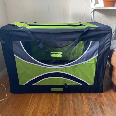 Köpte detta trimbord på Högbo hundutställning. Det är tungt och superstabilt. Jag har sytt ett täckande, tjockt tyg att fästa runt med kapellvred. Tygklädseln har fickor för trimgrejer. Bra setup för utställningar. Använt två gånger och därefter har det bara stått på grund av att hundarna nu är borta.