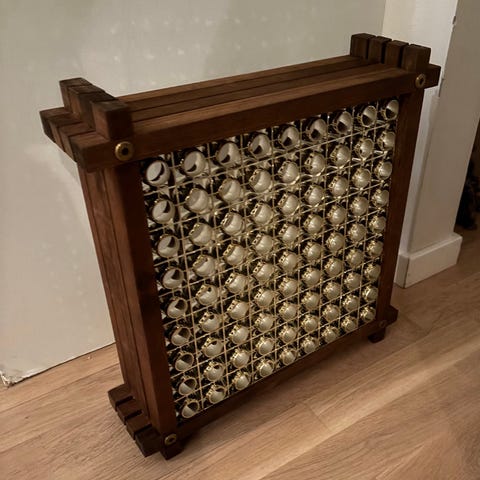 1 stor retro taklampa i teak med raster i plast från tidigt 1970-tal. Fungerar som den ska men sitter en äldre stickpropp på. Ok skick, en flisa har gått i träet samt att en liten bit plast har gått av i rastret men inget som man ser när den hänger upp. Ca 67,5*67,5 cm. Finns i Sätila men kan även tas till Göteborg för avhämtning.