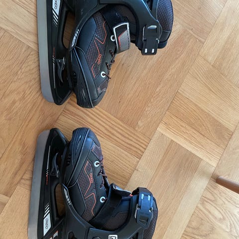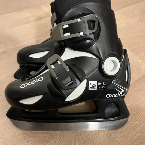 Oxelo barnskridskor i storlek 34-36 med svart färg. Skridskorna är avsedda för allmän skridskoåkning och har justerbara spännen för bra passform. Knappt använda då de va fel typ än önskat.