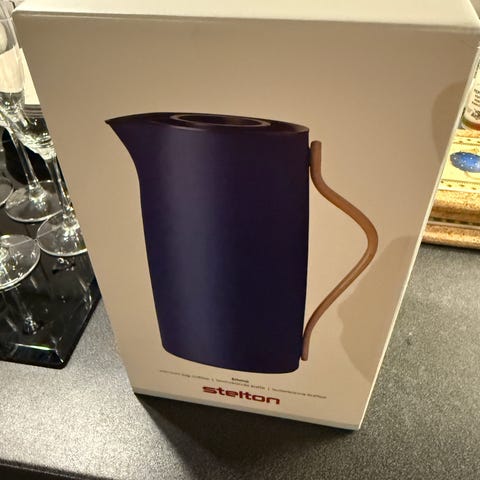 Stelton termokanna med en kapacitet på 0,5 liter. Kannan är vit och tillverkad av material som håller drycken varm. Designad av Erik Magnussen och tillverkad i Danmark. Produkten inkluderar en svart lock och är avsedd för att hålla vätska varm under en längre tid.