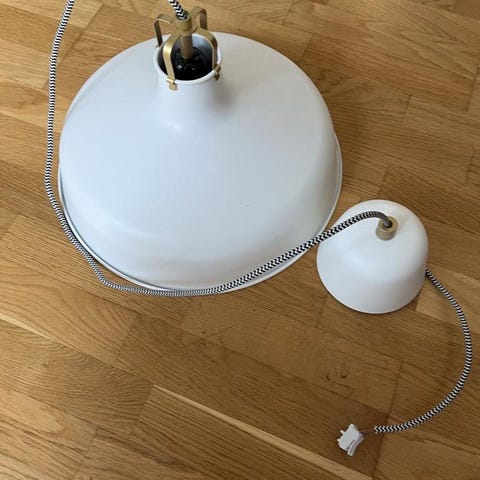 Lampa från IKEA i modellen RANARP. Off-where med svart/vit textilsladd. En klassiker!