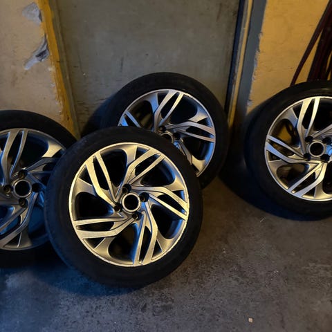 Väldigt fina alufälgar med nästan nya dubbdäck. ET på fälg är 27, bultmönster 4/108 & storlek på däck 215/65/16 Bult följer med. Dom har suttit på en Peugeot 3008. Precis köpt dom men passade inte på min bil.