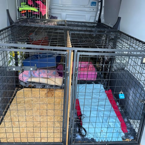 Nu ska hundbilen säljas och jag har monterat ur buren , den är till salu.