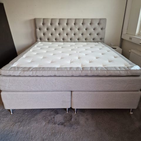 En välskött och skön säng för hela kroppen som Jensen är kända för. Fjädrar i både undermadrass och mellanmadrass, bäddmadrass i Latex och där överdraget går att tvätta i 60*. Även mellanmadrassens överdrag går att tvätta om man önskar detta, har en dragkedja för detta. Enda anledningen till att jag säljer är att jag inte behöver en dubbelsäng och att den tar plats där jag bor nu.