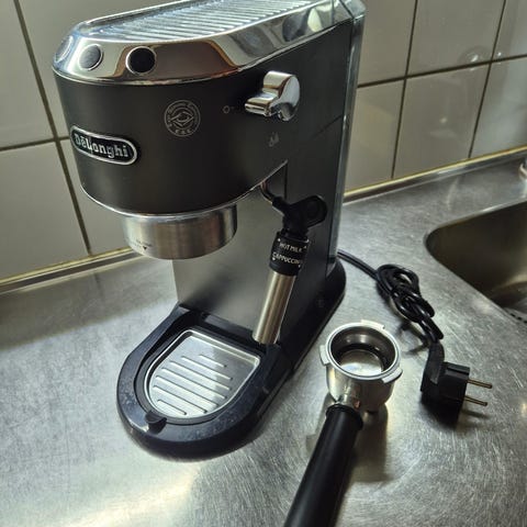 *Kan gå ner i pris vid snabb affär* DeLonghi Stilosa EC260 espressomaskin, svart. Välbevarad! Fungerar jättebra och är regelbundet rengjord. Lätta tecken på slitage, se gärna bilderna. Köpt i England så kommer med en adapter vilket har funkat toppen.