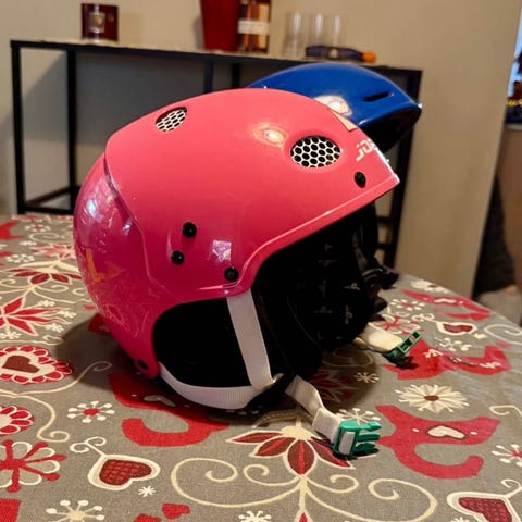 Har haft till dottern när hon var 5 till 8 år. Funkar förfarande. Enkla Scott skidglasögon följer med. Skidhjälm regleras