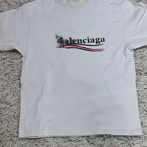 Balenciaga Mode T-shirt i storlek M för dam. Tillverkad av bomull och har en vit färg. T-shirten har korta ärmar och rund halsringning. Mindre smink fläck vid halsringing. Se bild. Är liten i storleken och mer som en S. Hämtas i centrala stockholm eller så står köparen för frakten.