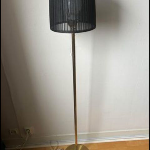 Inte mätt höjden men uppskattar den till 130-140 cm kanske. Lamphuvud och ben i metall. Ljuskälla ingår.