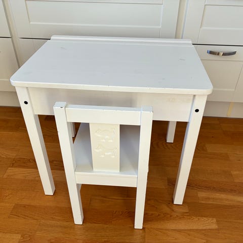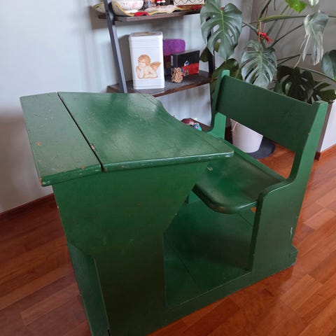 Sundvik skolbänk med tillhörande stol. Finns I Hindås för upphämtning.