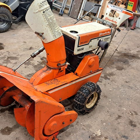 Stiga med 8hk Tecumseh kvalitetsmotor. Har stått sedan 2023, behöver omsorg som jag inte hinner ge. Slumpas bort för 500kr pga att den går ojämt.