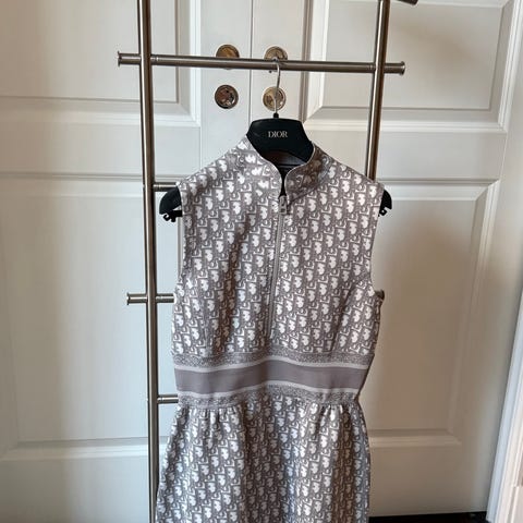 Prada linne i beige färg med logga. Storlek S-M/ italiensk 42. Kort modell, crop top/top. Hämtas i centrala stockholm eller så står köparen för frakten.