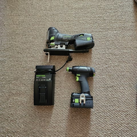 Festool TXS skruvdragare inklusive två batterier och en laddare. Batteridriven skruvdragare lämpad för olika monterings- och byggprojekt.